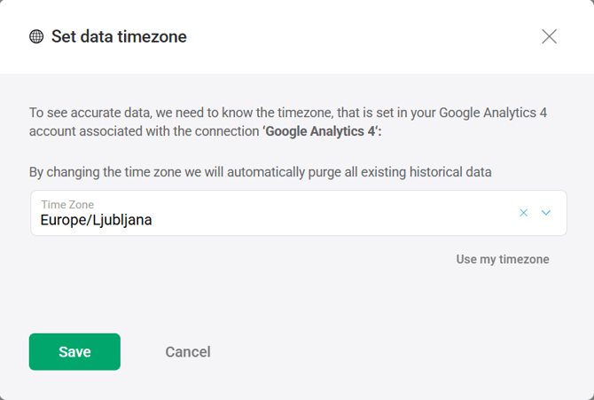 The data timezone setting defines how Databox interprets the start and end of selected date ranges for that data source.