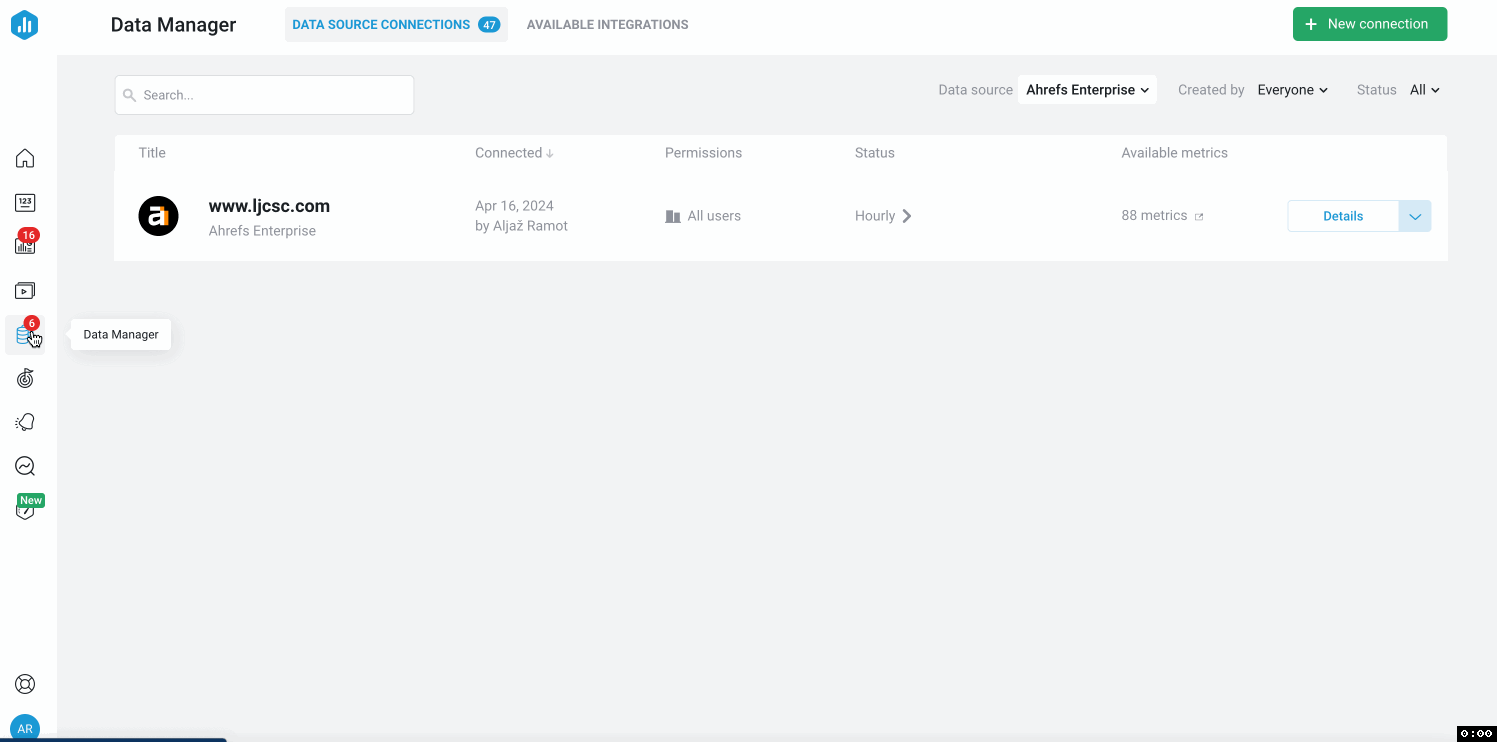 Once authorization is complete, the connection will be established, and your Ahrefs data will be available in Databox.