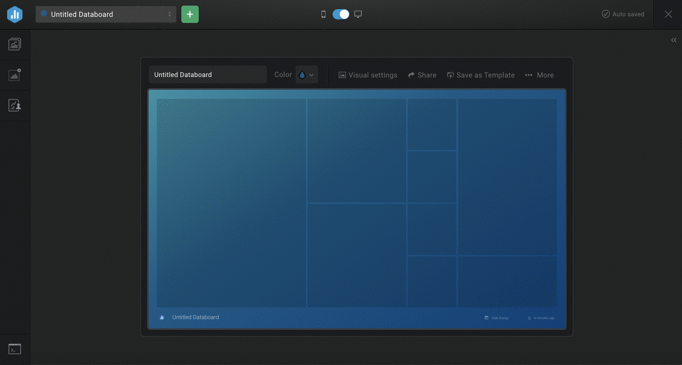 - Find the visualization you want to add to your Databoard. Click on the Visualization or drag and drop the selected visualization from the Visualization Library to your Databoard. This will automatically produce a blank Datablock on your Databoard.