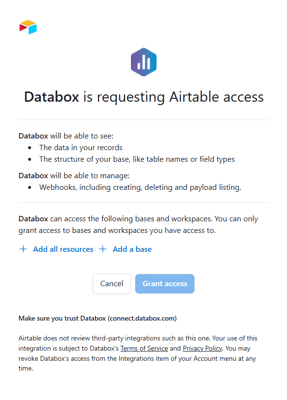 - Add all resources to grant access to every base and workspace you have permission to view, or