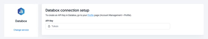 Dataddo connects to Databox through the Databox API, which requires authentication using a personal API key. This key ensures that Dataddo can securely send data to your Databox account.
