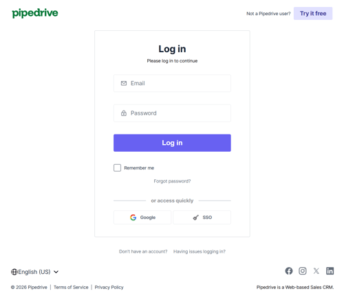 1. Log in to Pipedrive —You'll be prompted to sign in to your Pipedrive account to get started.