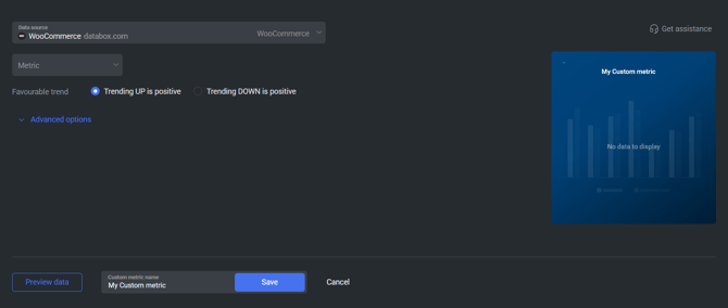The WooCommerce integration allows you to create custom metrics using the metric builder, ideal for visualizing data not included in the basic metrics offered by the integration.
