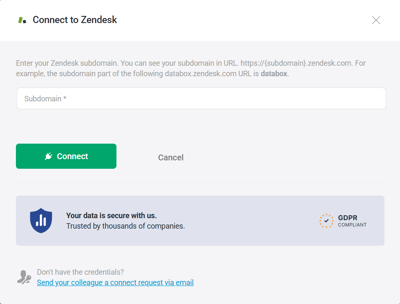 To connect Zendesk to your Databox account for the first time or with new credentials: