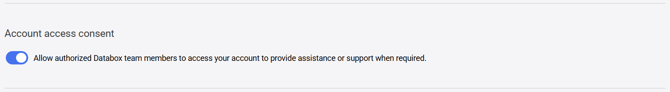 Control whether the Databox team can view your account and manage access settings to align with your internal security policies.