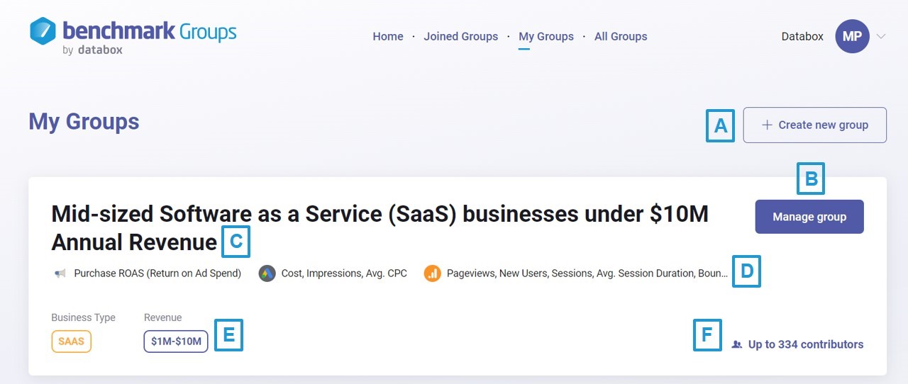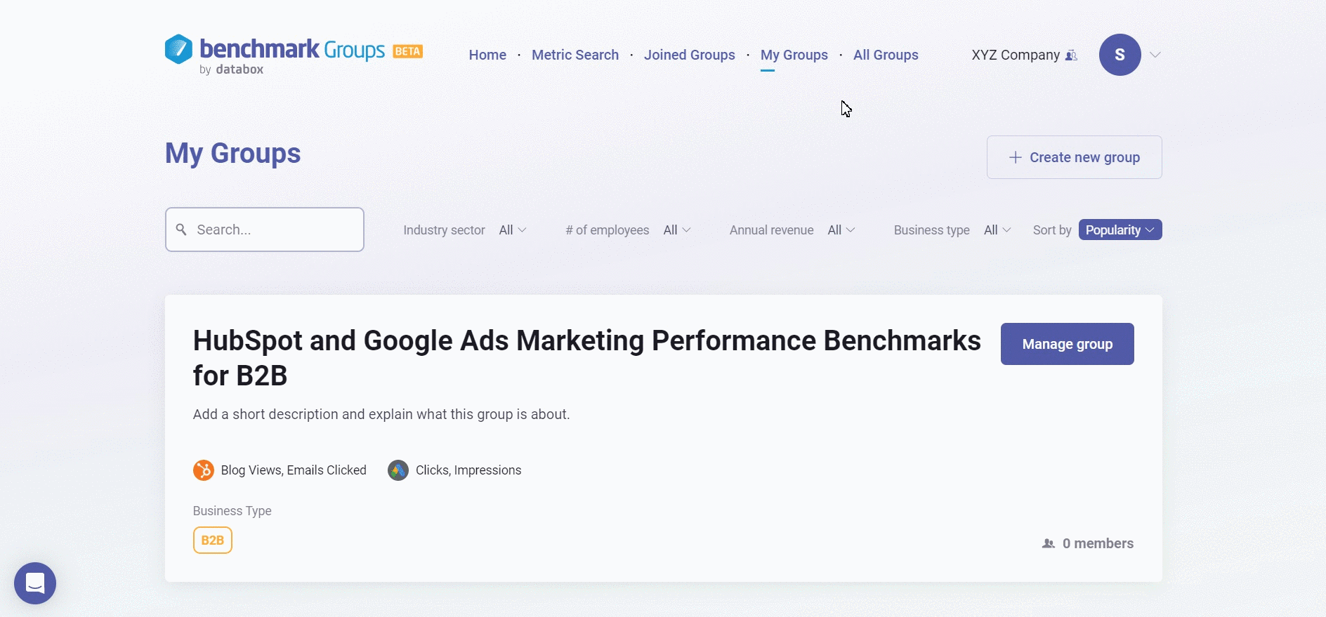 Creating your own Benchmark Groups gives you control over which data sources and metrics are included in your Benchmark and allows you to invite (and remove) members from your group.IN THIS SECTION