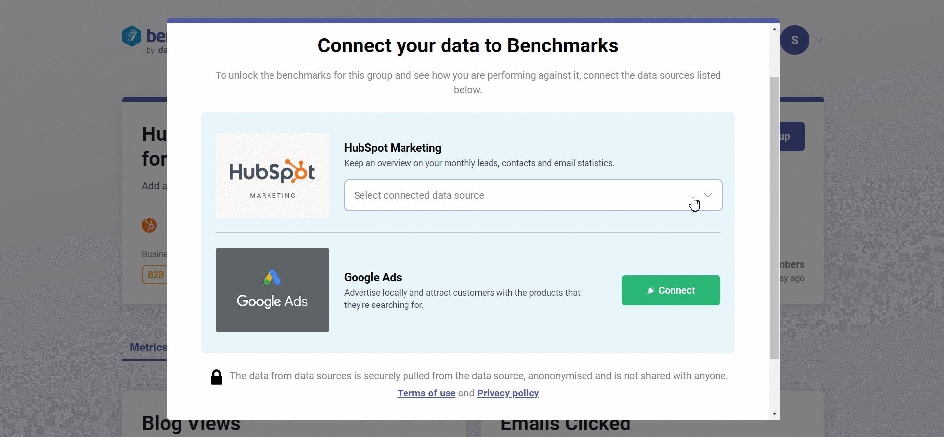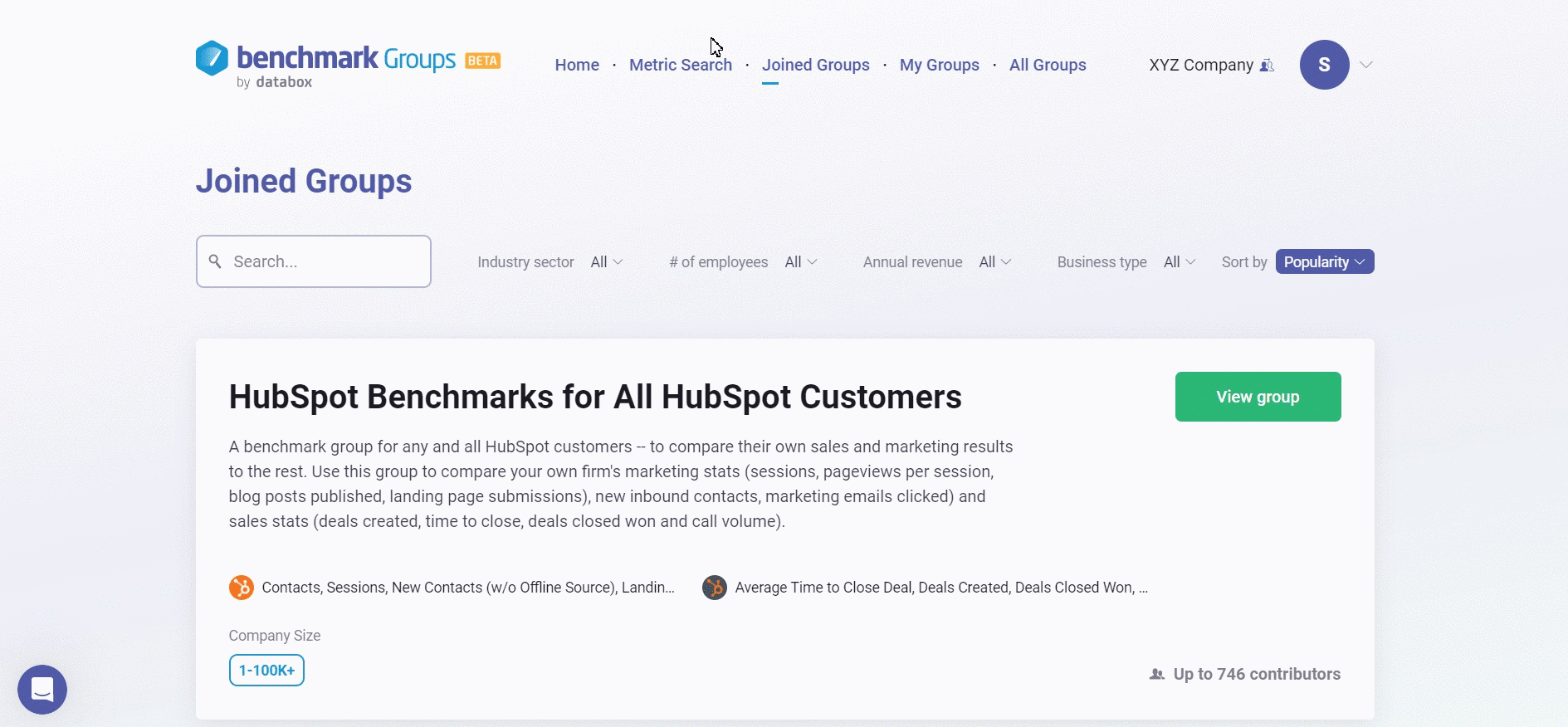 Pro Tip: To join a group, you have to connect at least one Data Source in the group. You'll be able to see Benchmarks in the group only for Data Sources you've connected.