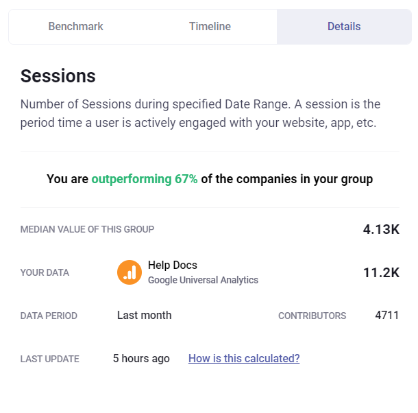 Pro Tip: The benchmarks will be calculated only if your group has enough members to meet the group criteria and if their Data Sources have data for the last month.