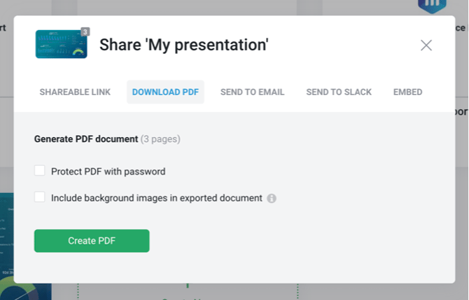 As with other sharing options, you can choose to include background images in the PDF. We recommend using this feature only if the images are optimized and the total file size is under 10MB.
